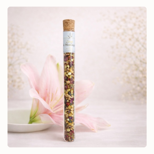 Zauberhafte Mischung für die Herzen, süßlicher Duft, stärkt die Liebe, Abwehr negativer Einflüsse / Inhalt: hochwertige Weihrauchsorten, Styrax, Benzoe, Rosenblütenblätter, Eisenkraut uvm.